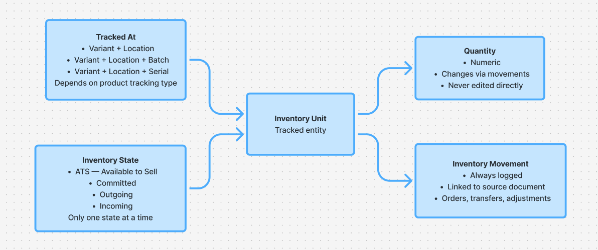 Inventory logic already existed at the product level. UX work focused on clarifying how that logic appears to users: what stock represents, where it exists, how its status changes, and how those rules remain consistent across different workflows.